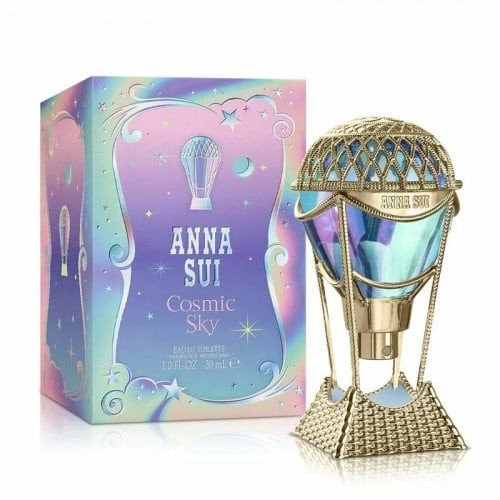 A symbol of freedom and creativity, hot air balloons have always captured our imagination.Inspired by the grand designs of vintage hot air balloons, the ANNA SUI COSMIC SKY bottle features a delicate champagne silver metal gilded cage and basket. Mystifying blue and purple holographic bottle color invokes images of the milky way. The atomizer is beautifully integrated within the bottle design, creating a precious object for any vanity! Against a celestial background, every Anna Sui girl is inspired to catch a shooting star and dream!