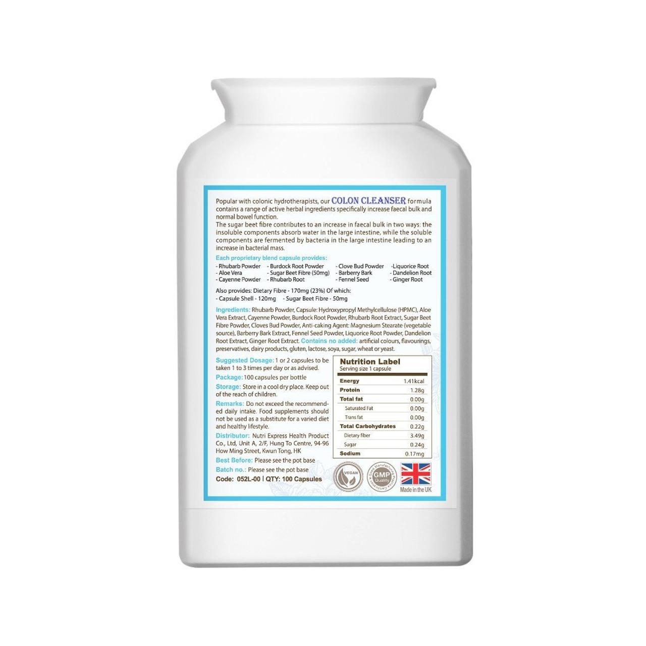 Rhubarb Powder, Aloe Vera, Cayenne Powder, Burdock Root Powder, Sugar Beet Fibre (50mg), Rhubarb Root, Clove Bud Powder, Barberry Bark, Fennel Seed, Liquorice Root, Dandelion Root, Ginger Root