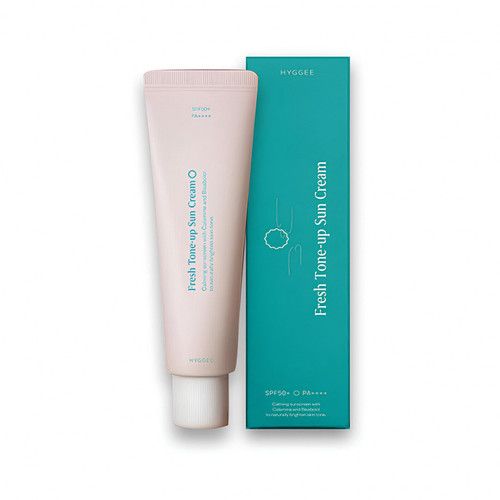 HYGGEE Refreshing Color-Correcting Sunscreen SPF50 PA++++ contains soothing chamomile extract and natural mineral (calamine) with color-correcting, sun-protecting, and balancing oil-water properties. Gentle formula suitable for all skin types.